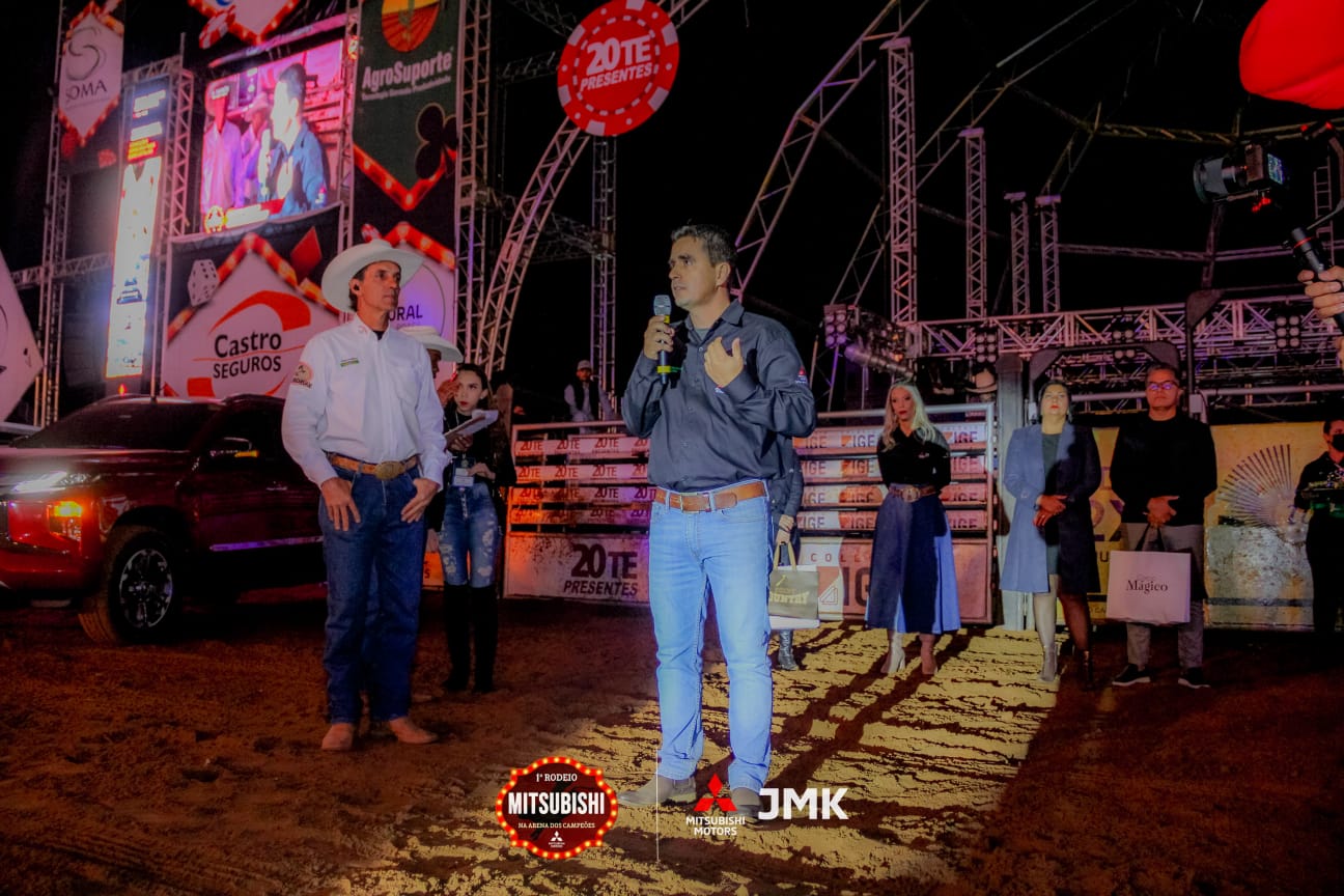 Esse ano, a abertura muitas novidades. A Mitsubishi inovou: em vez de cavaleiros com as bandeiras, as candidatas ao Rainha do Rodeio entraram com as bandeiras. Um vídeo institucional foi exibido, mostrando a unidade que já 20 anos está em Catalão. O presidente do Sindicato Riral de Catalão, Renato Ribeiro, falou do momento: “Queremos colocar no patamar que a Expo Catalão merece estar, como a melhor de todos os tempos. Temos aqui a Mitsubishi que é de Catalão. Temos que mostrar todo nosso orgulho”.