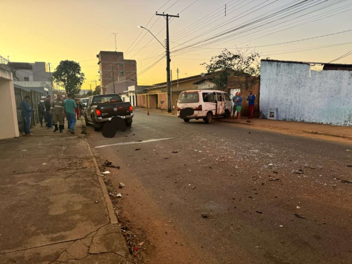 O corpo de bombeiros foi acionado na manhã deste sábado,6, por volta das 06:00h na Rua Uruguai, Bairro das Américas, para atender um acidente de trânsito entre uma van que transportava trabalhadores rurais e uma caminhonete Amarok