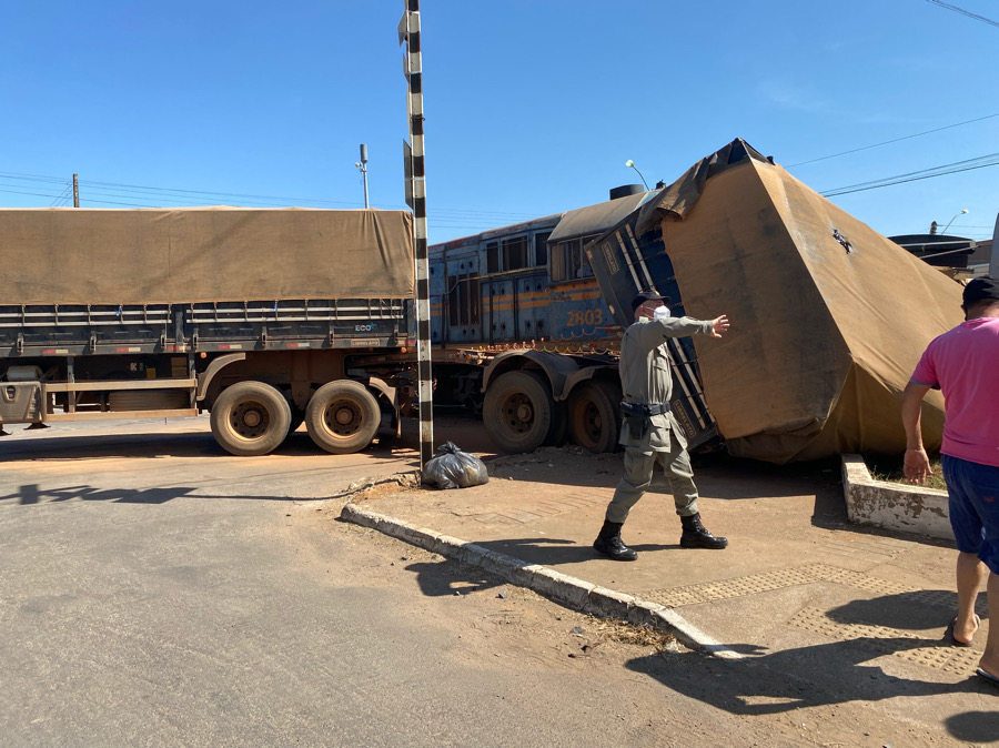 Parte da carreta foi atingida pela locomotiva, em Catalão