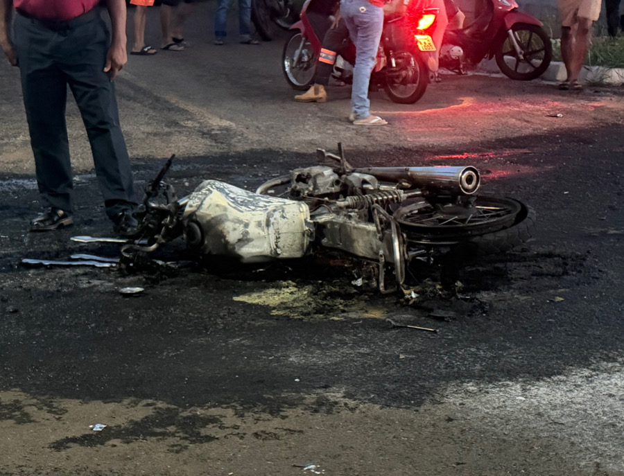 Segundo informações, o carro de aplicativo subia a Avenida Albino do Nascimento e, ao realizar uma conversão à esquerda, acabou sendo atingido pelas motocicletas que desciam pela via. Com o impacto da batida, uma das motocicletas pegou fogo e ficou completamente destruída.