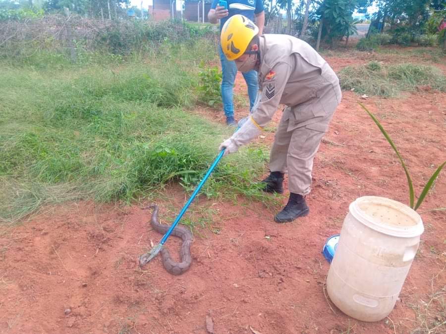 O corpo de bombeiros foi acionado a comparecer na tarde desta sexta-feira,21, hoje no pátio de uma fábrica de doces que fica nas proximidades da GO 330, em Três Ranchos onde capturou uma cobra Jiboia.