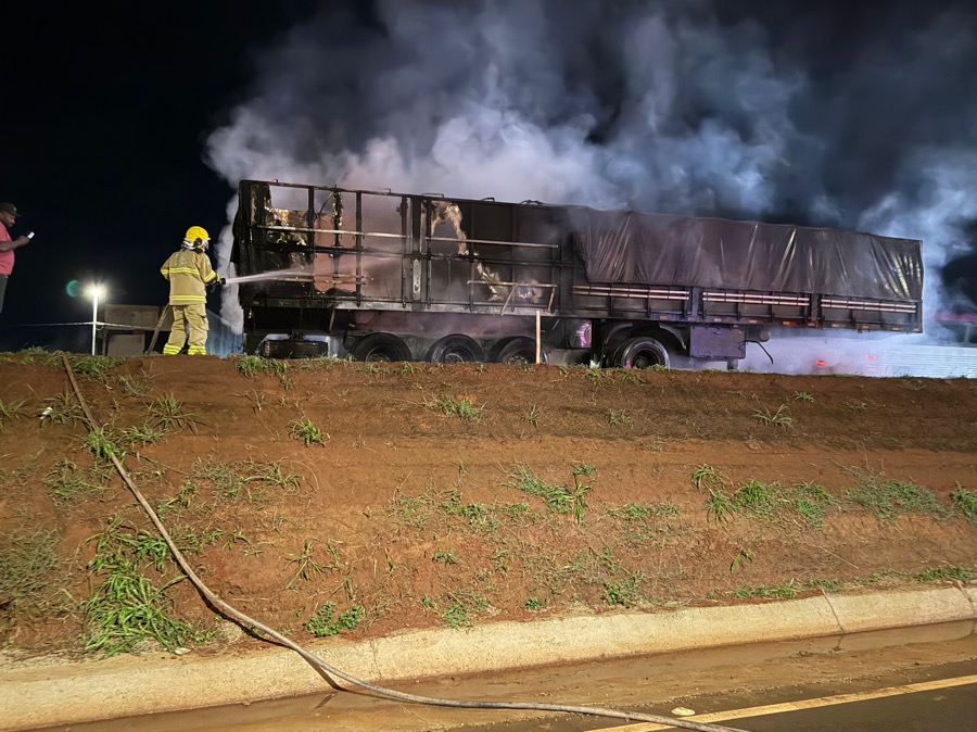 Porém parte da carreta ficou destruída, as informações são de que o motorista conseguiu desengatar o cavalinho antes que o fogo alastrasse, por sorte ninguém ficou ferido.