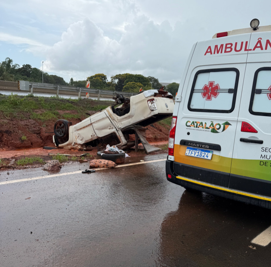 Home Acidente CAMINHONETE CAPOTA ÀS MARGENS DA BR-050 EM CATALÃO E DEIXA QUATRO PESSOAS FERIDAS