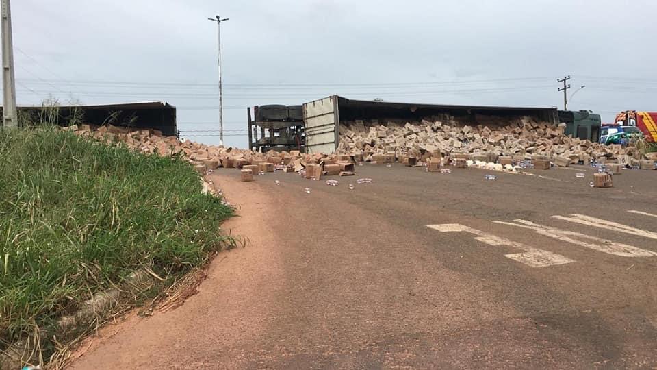 Ao tentar fazer o Trevo ( Rotatória) a carreta tombou , o Corpo de bombeiros de Caldas Novas, e a Policia Rodoviária Estadual foram acionados. Por sorte o motorista nada sofreu, por ser uma carga inflamável, o local foi isolado