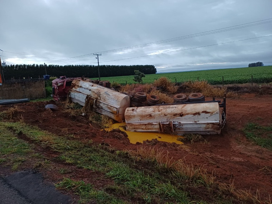 O sinistro ocorreu por volta das 04h00, no km 204 da BR-050, próximo ao município de Campo Alegre de Goiás. Uma carreta-tanque utilizada para o transporte de óleo vegetal saiu da pista e capotou após o condutor, um homem de 51 anos, perder o controle da direção. Ele sofreu apenas lesões leves e foi atendido no local.
