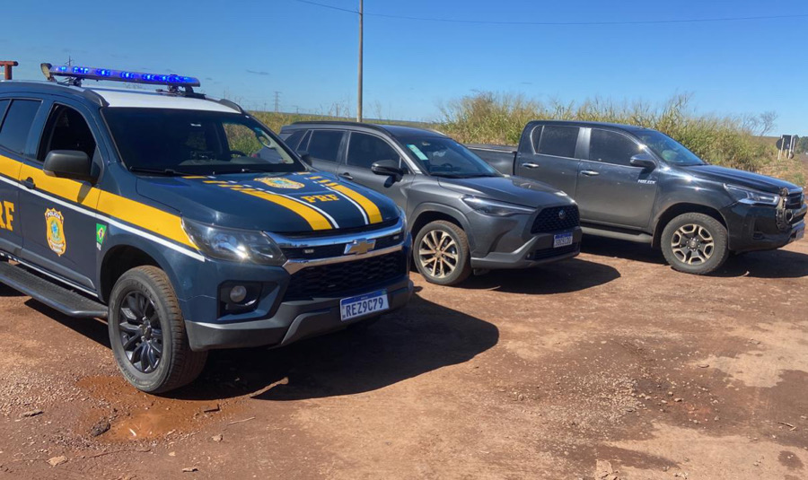 A Polícia investiga roubo duplamente qualificado; dois autores, subtração de veículos para outro estado e restrição de liberdade das vítimas.
