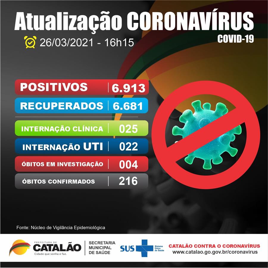 A Secretaria Municipal de Saúde informa aos catalanos a atualização de hoje (26), referente aos casos de Covid-19 no município de Catalão.