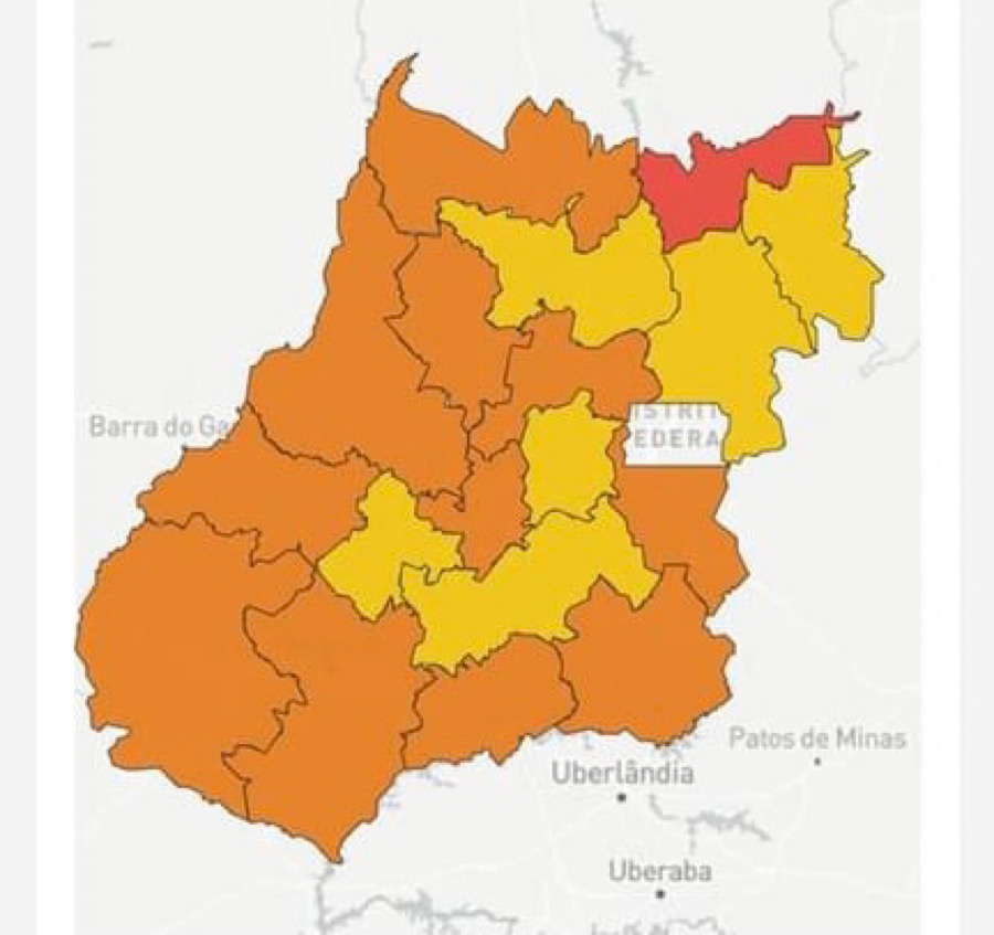 Saiu agora pouco o mapa de índice de contaminação das cidades goianas. Catalão saiu do vermelho (calamidade) e foi para o laranja (crítica).