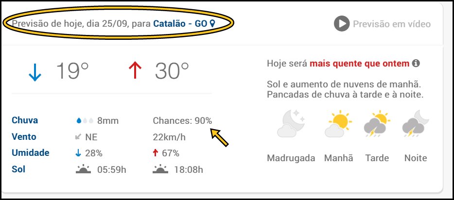 Amigos do Blog da Verdade, de acordo com o site climatempo, a chuva poderá chegar em Catalão ainda nesta quarta feira,25, hoje, com probabilidade de Chances chegando a casa de 90%.