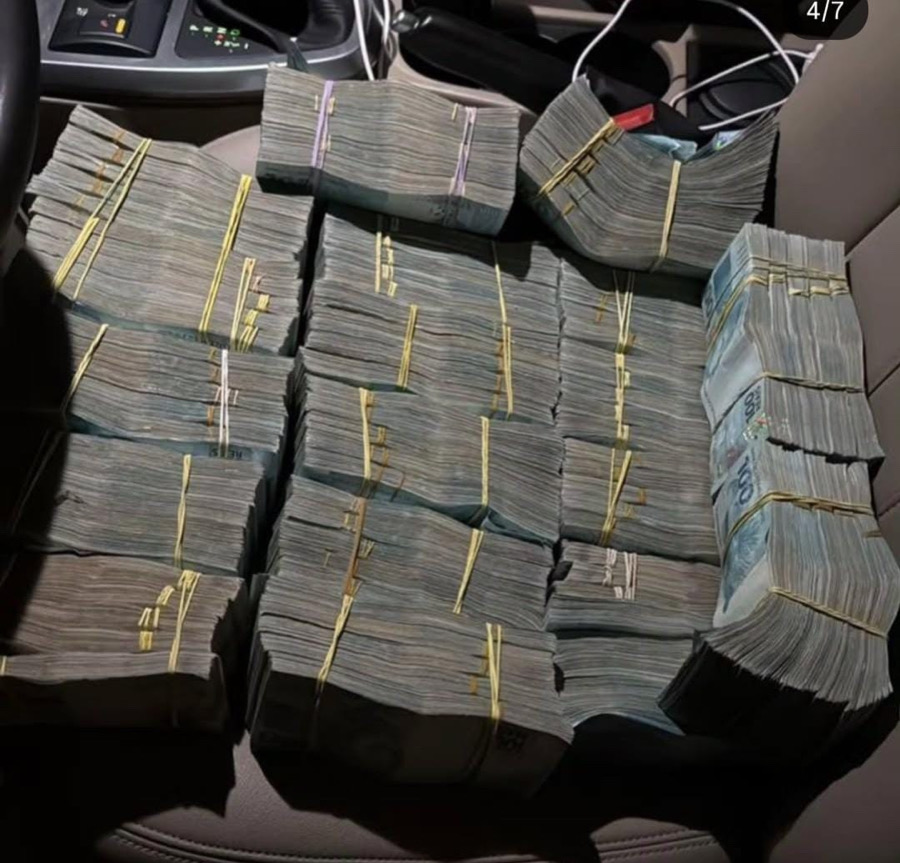 Durante a fiscalização e a busca no interior do veículo, os policiais localizaram duas malas contendo uma grande quantidade de dinheiro em espécie. Após a contagem, foi constatado que o valor total apreendido chegava a R$ 1.000.000,00 (um milhão de reais). O dinheiro estava acondicionado de forma irregular, sem qualquer documentação que comprovasse sua origem lícita.