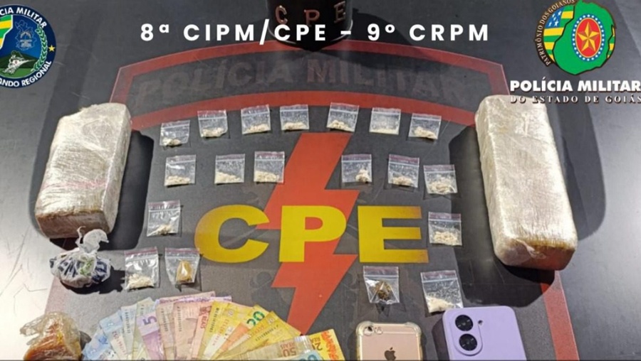 Durante as buscas no local, a equipe apreendeu aproximadamente 1,5 quilo de maconha, cerca de 100 gramas de crack e 17 porções de cocaína já fracionadas para comercialização. Também foram recolhidos R$ 406 em dinheiro, dois aparelhos celulares e uma balança de precisão, material comumente utilizado na pesagem e distribuição de entorpecentes.