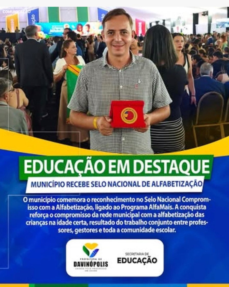 DAVINÓPOLIS RECEBE SELO NACIONAL DE ALFABETIZAÇÃO E SE DESTACA NA EDUCAÇÃO MUNICIPAL