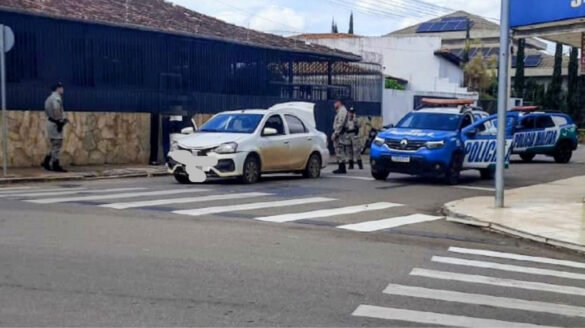 O carro foi parado no bairro Mãe de Deus após os disparos, encerrando a perseguição.