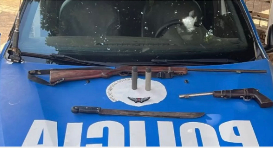 Após tomar conhecimento de que um homem havia sido agredido com um facão, a viatura de Ouvidor deslocou até o local da ocorrência onde realizou a prisão do autor.
