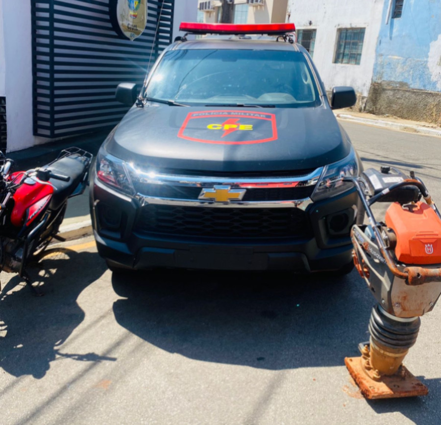Segundo a Polícia Militar, ele mostrou o local onde estava escondido o compactador de terra, que foi recuperado, Além uma motocicleta YBR factor de cor vermelha, relacionada ao crime, também foi apreendida.