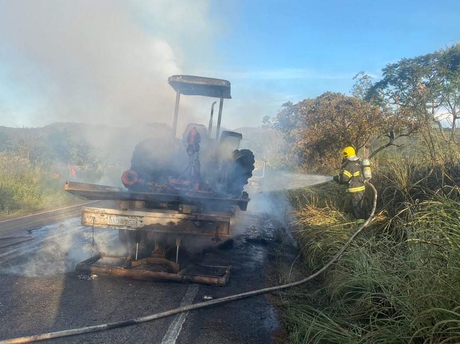 Ocorrência via Bombeiros | Incêndio em veículo de carga, caminhão guincho que transportava um trator pela GO-210 entre as cidades de Catalão e Davinópolis.