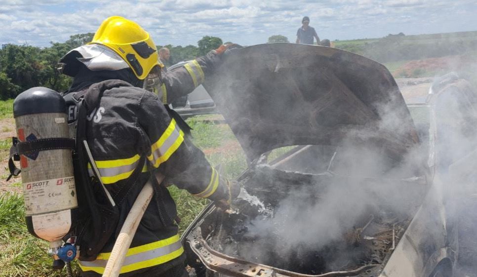 No local, foi constatado que o veículo já havia sido completamente destruído pelas chamas.