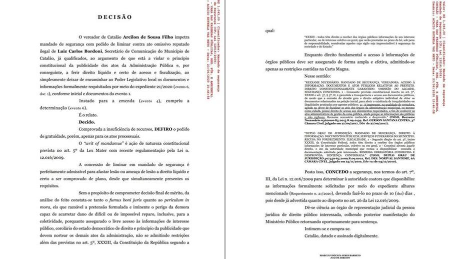 Decisão do juiz Marcus Viniciu Ayres Barreto determina que o jornalista Luiz Carlos Bordoni, apontando como secretário de Comunicação da Prefeitura de Catalão, está obrigado a fornecer à Câmara Municipal um relatório detalhado, mais a documentação devida, de todos os gastos com propaganda efetuados na atual gestão de Adib Elias com recursos do município.