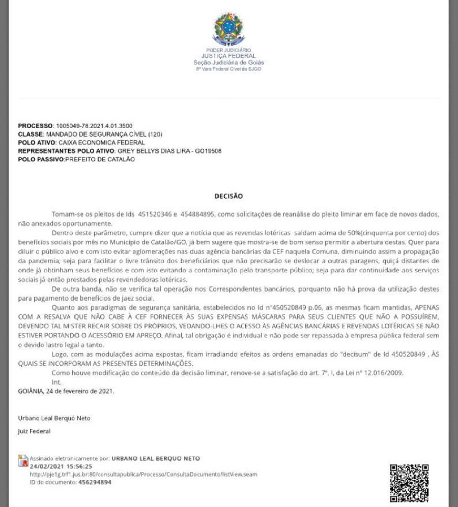 LOTÉRICAS DE CATALÃO ABREM AS PORTAS ATRAVÉS DE MANDADO DE SEGURANÇA