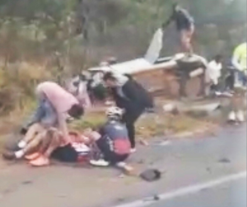 Motorista tenta fazer ultrapassagem e colide com caminhão e 6 ciclistas; acidente tem 2 vítimas fatais