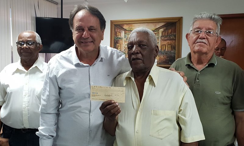 Os dançadores e devotos de Nossa Senhora do Rosário foram até o gabinete do prefeito de Catalão Adib Elias nessa quinta-feira (25). Todos vieram acompanhar o repasse do recurso, um cheque no valor de R$ 50 mil que servirá para arcar com parte das despesas da obra de reforma da Igreja do Rosário. Na oportunidade, Adib anunciou que pretende ajudar ainda mais a Irmandade que é responsável por manter viva a tradição cultural e religiosa centenária na cidade.