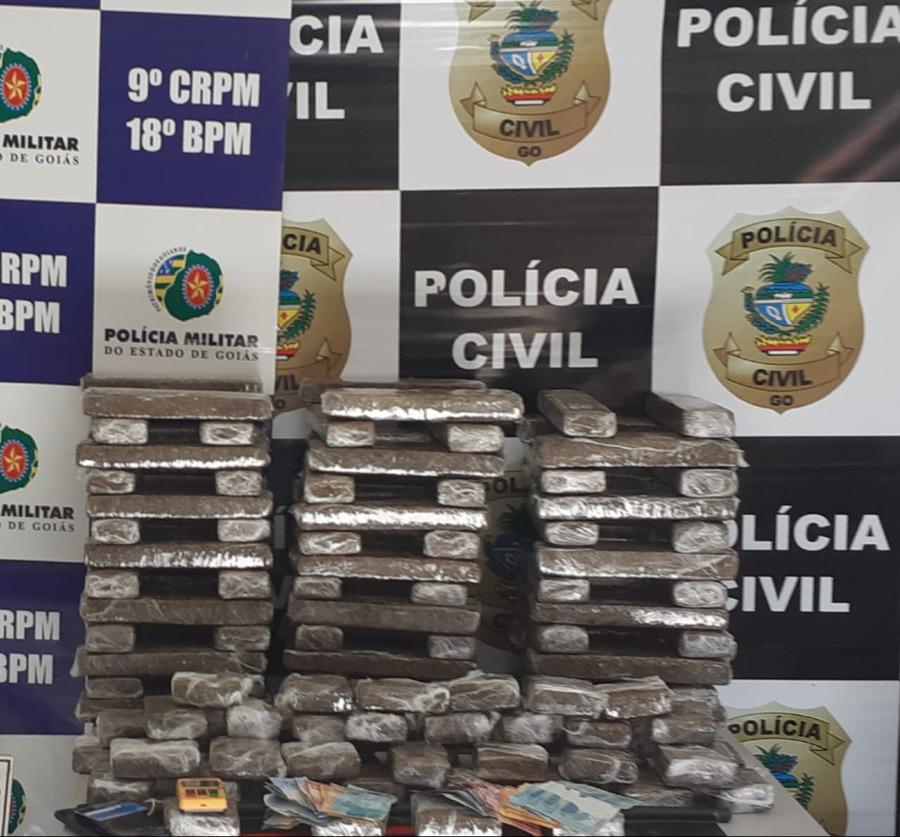 Na tarde de hoje, 23.02.2021, após troca de informações entre as forças de segurança, policiais civis do GENARC/9a DRP, e policiais militares do GPT/18° BPM, conseguiram surpreender em flagrante delito três investigados no exato momento em que chegaram na cidade de Catalão e tentavam esconder aproximadamente 103,5 quilos de entorpecente do tipo Maconha em uma residência situada no Bairro Eldorado.