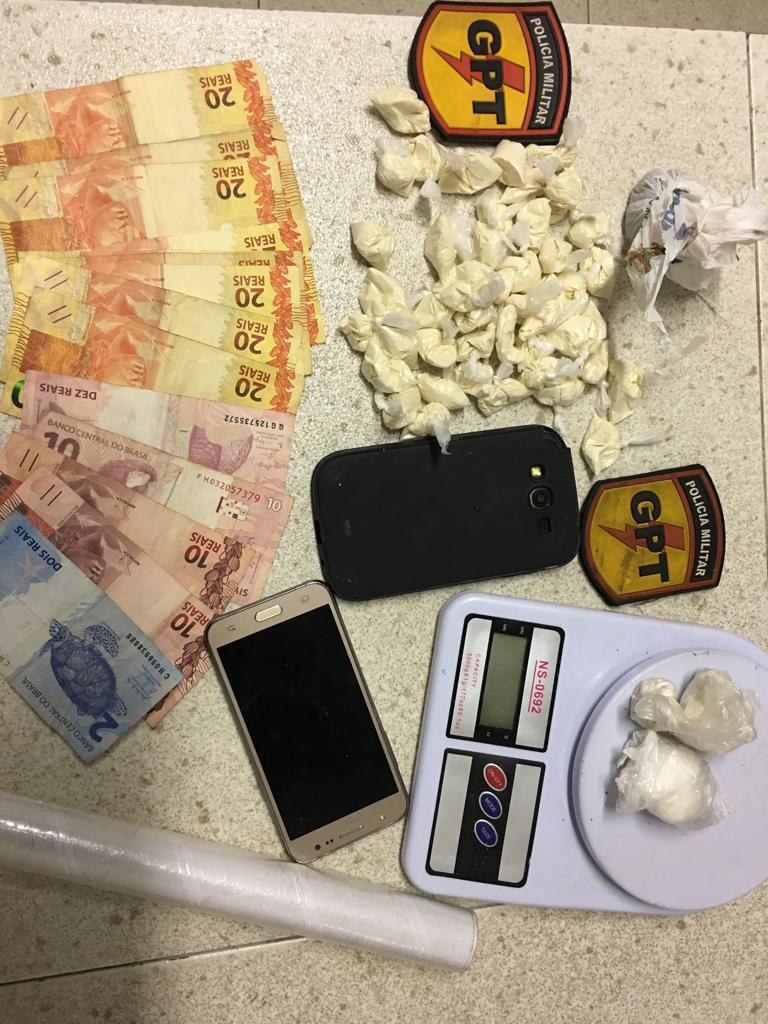 Dando continuidade nas diligências, as equipe foram até ao endereço indicado pelos autores, no bairro Ipanema, onde foi abordada uma jovem de 23 anos que tinha em sua posse porções de cocaína e dinheiro oriundo da venda de entorpecentes.