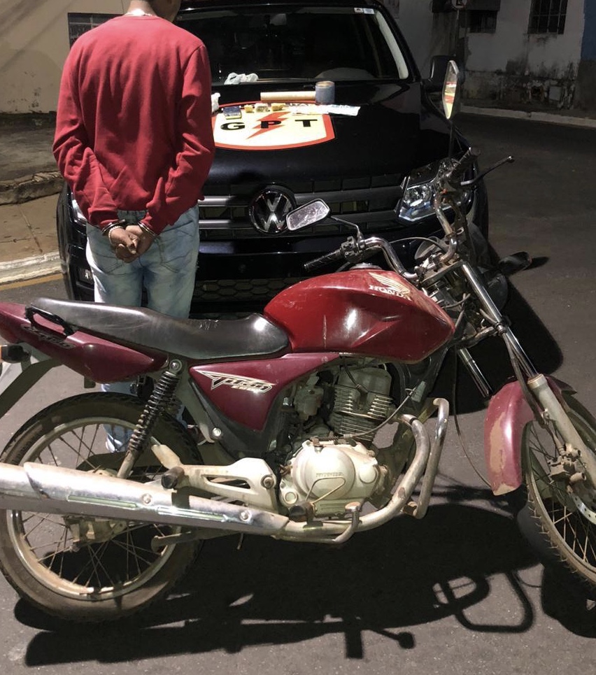 Diante das circunstâncias, o infrator de 21 anos de idade, natural de Catalão , com antecedentes criminais por Porte ilegal de arma de fogo, foi encaminhado à DP onde foi autuado pelo crime de Tráfico de drogas e Receptação, sendo encaminhado ao presídio local.