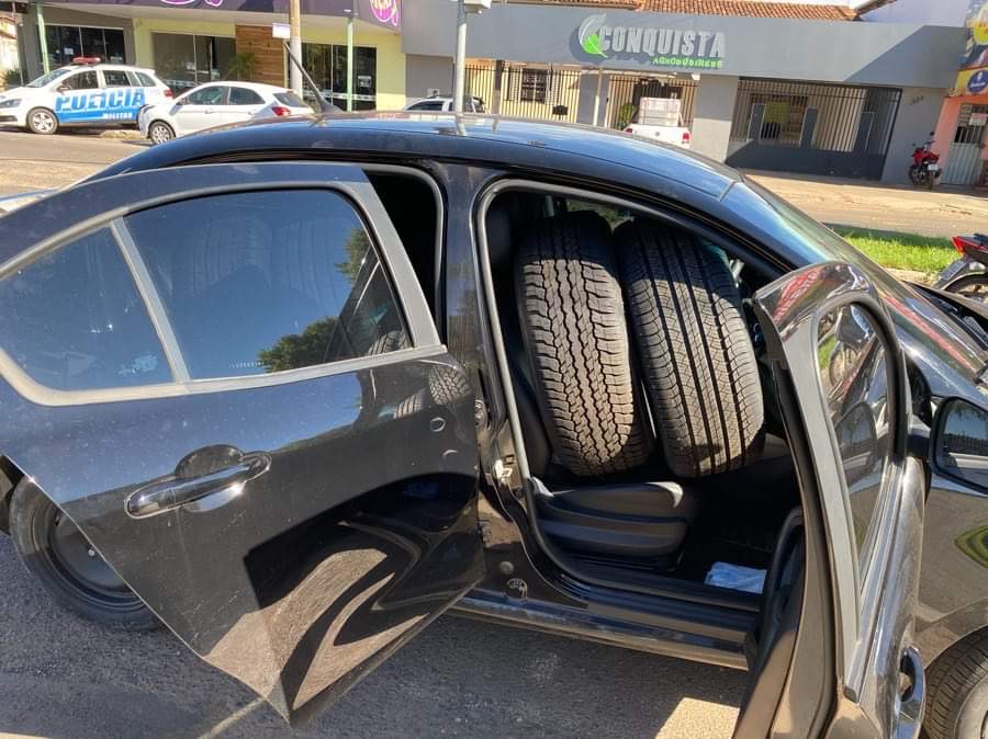 Através de informações sobre suspeitos de estelionatos (golpes de cartão de crédito) comprando pneus de camionete em um estabelecimento comercial de Catalão, as equipes realizaram a abordagem ao veículo suspeito e, na busca veicular, foram localizados oito (08) pneus provenientes da conduta criminosa, cinco (05) cartões de diferentes instituições financeiras, máquina de cartão de crédito utilizada nos “golpes” e ainda três (03) aparelhos celulares.
