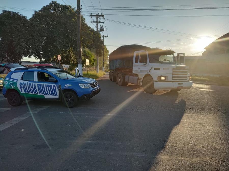 Um suspeito foi preso, ele conduzia a carreta carregada com carga de soja. Segundo informações o indivíduo tinha saído do presídio a menos em uma semana.