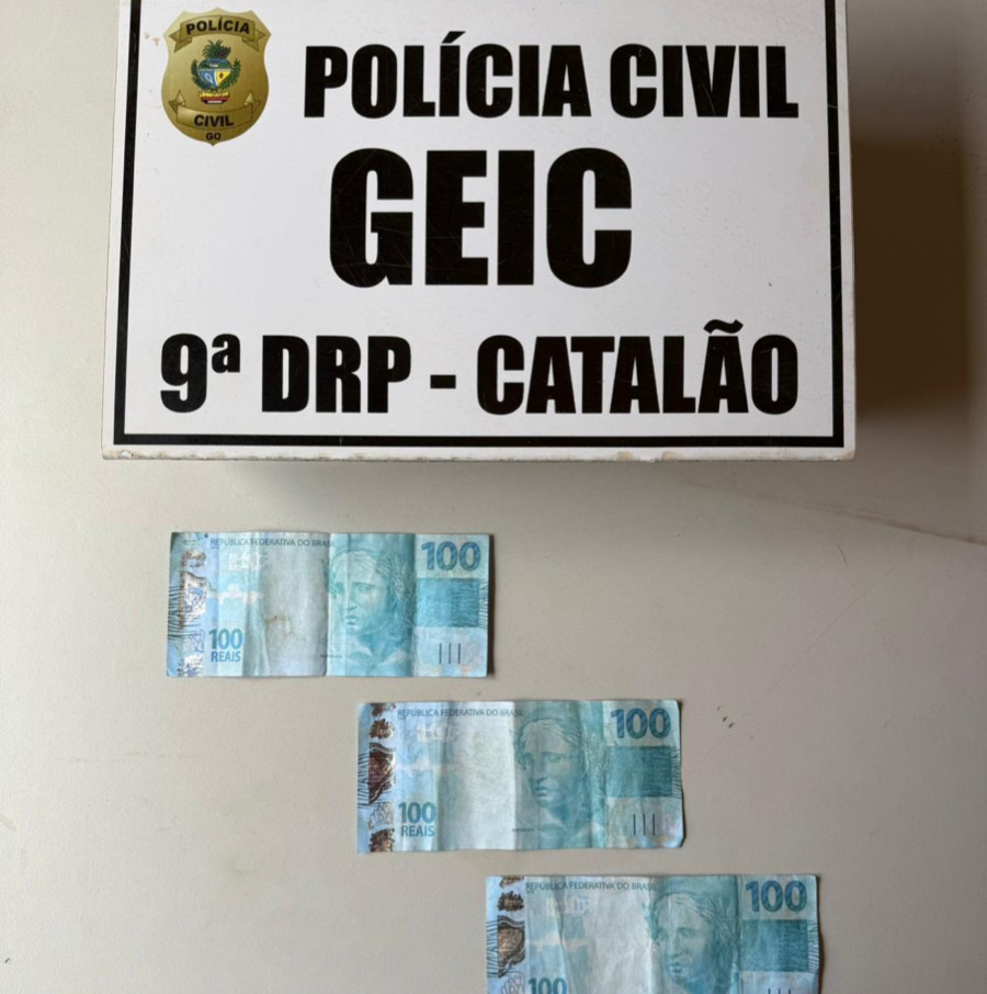 A Polícia Civil do Estado de Goiás, através da equipe do Grupo Especial de Investigação Criminal – GEIC/9ª DRP, apreendeu 03 cédulas de 100 Reais falsificadas e identificou indivíduos que as repassavam ao comércio da cidade.