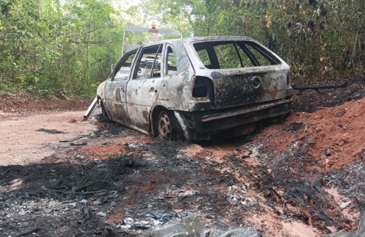 Segundo a polícia o veículo foi encontrado em una estrada vicinal aqui de Catalão carbonizado.