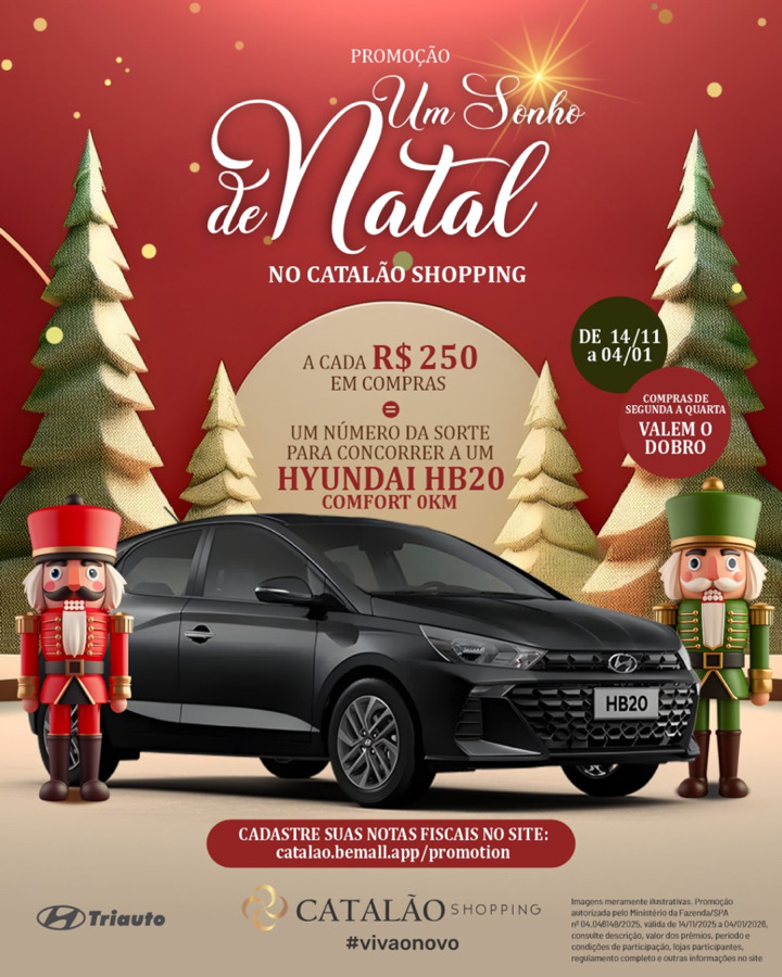 Home Notícias PROMOÇÃO “UM SONHO DE NATAL” DO CATALÃO SHOPPING OFERECE CHANCE DE GANHAR UM HB20 0KM