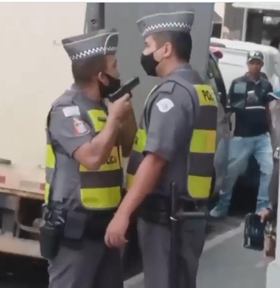Muito triste a cena de um policial apontando arma para outro e aconteceu porque o soldado, que aponta a arma, havia sido advertido pelo superior, em razão do atraso na troca de turno do almoço em 5 minutos e cujo fato teria sido comunicado a superiores… tudo aconteceu na Rua Santa Ifigênia, no centro de São Paulo, ambos foram afastados e o Policial que aponta a arma, foi preso… a Polícia Militar Paulista tomou as providências cabíveis… jornadas exaustivas, disciplina e hierarquia duras, estresse, surto psicótico, esgotamento físico… são muito comuns naqueles que atuam na linha de frente do combate ao crime …