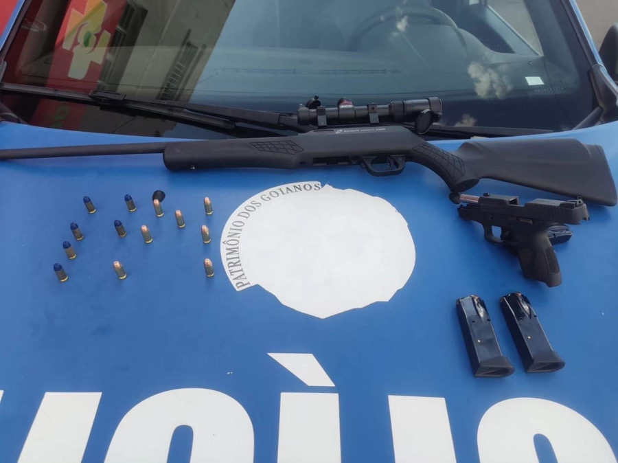 A Equipe de imediato deslocou para o local e após diligências localizou o autor da ameaça na posse de duas armas de fogo.